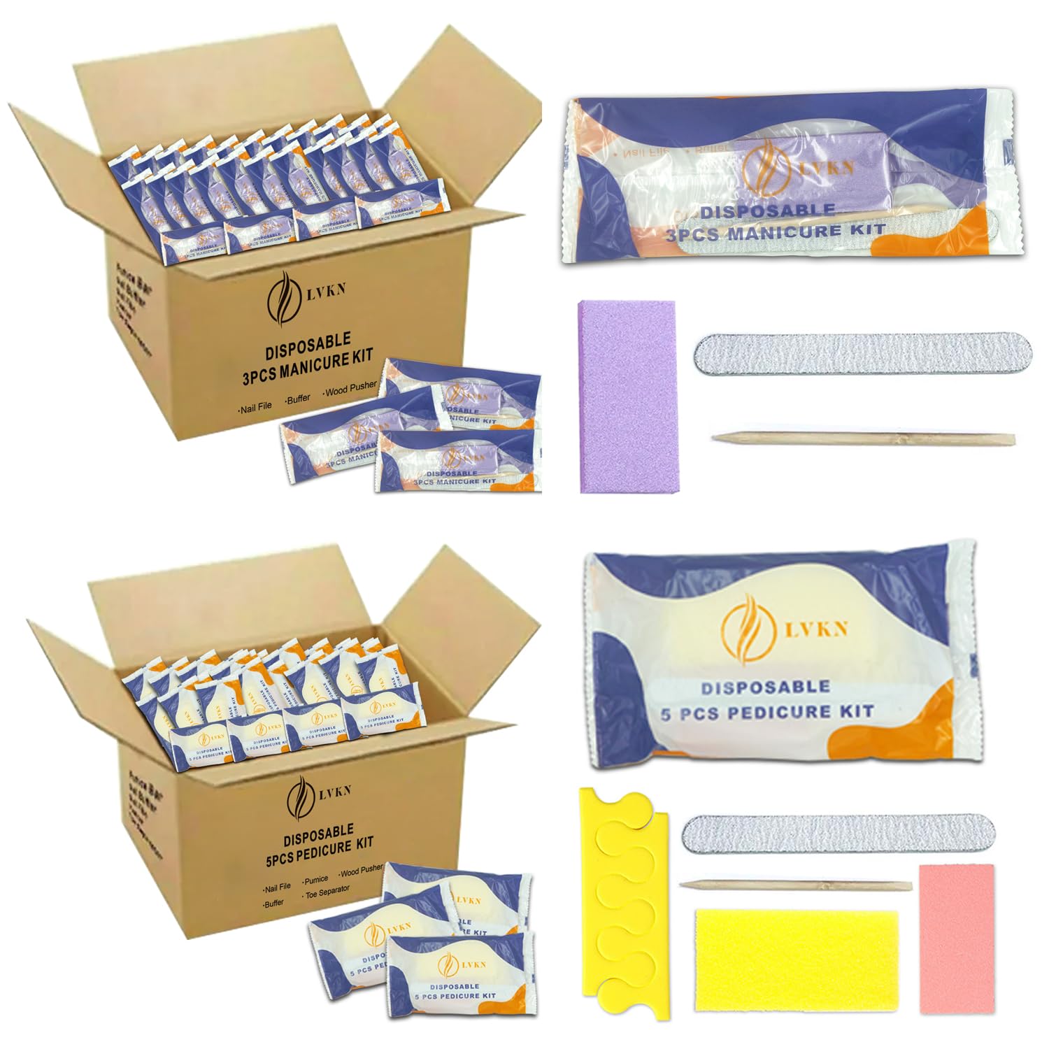 Professional Disposable Pedicure & Manicure Set Complete Hygiene and Nail Care Solution Includes Disposable Mani Kit 3-in-1 (10 Counts) and Pedi Kit 5-in-1 (10 Counts) (20 Counts)